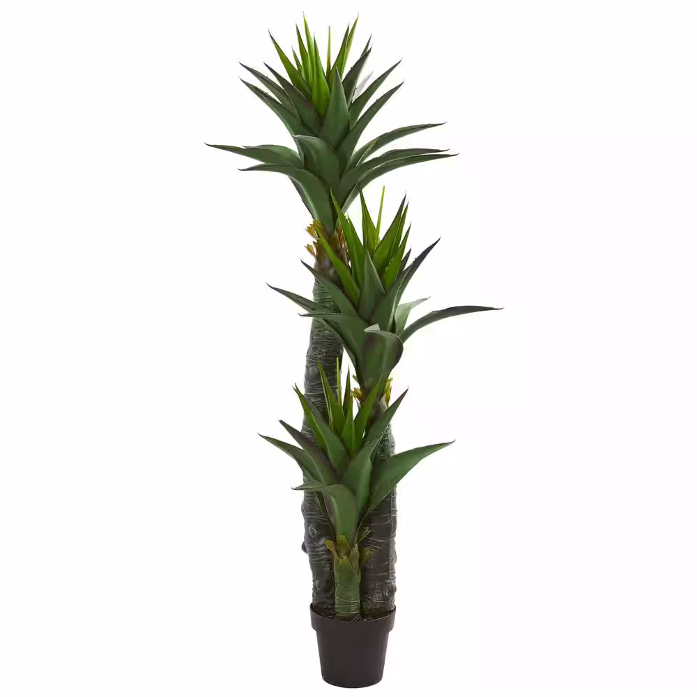 Nearly Natural Indoor 5 ft. Decorative Yucca Artificial Tree in Black Planter