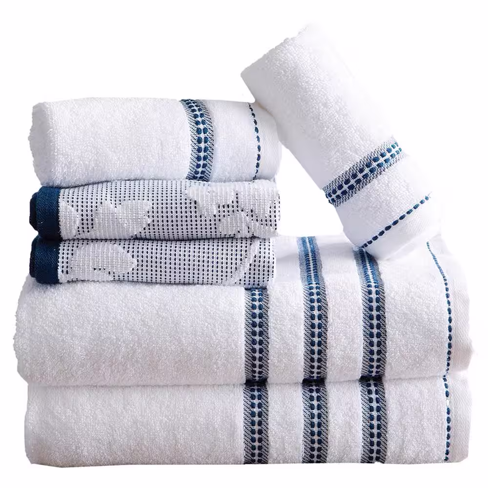 None 6-Piece Blue 100% Cotton Jacquard Bath Towel Set