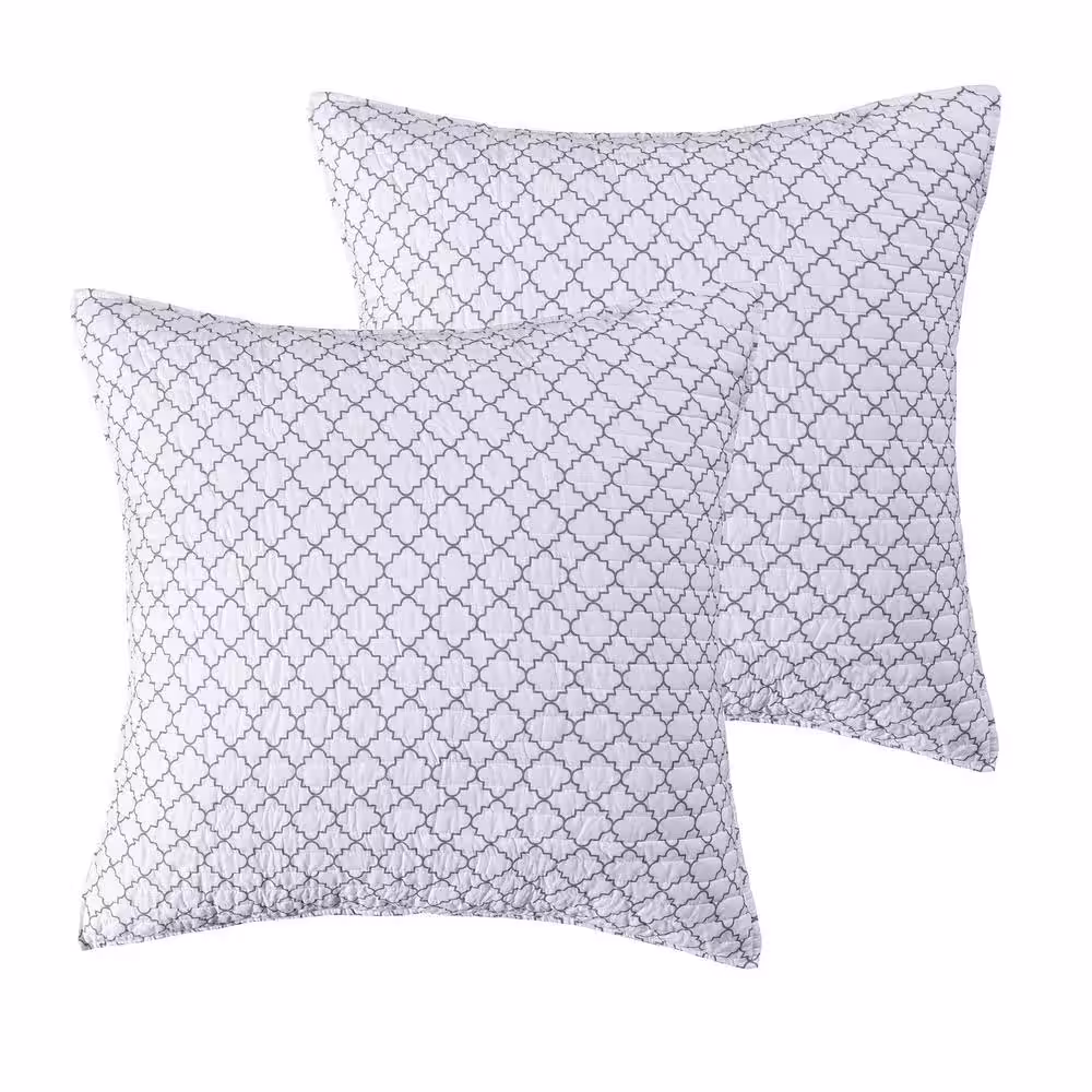 None Pisa Grey Trellis Quilted Cotton Euro Sham -Set of 2