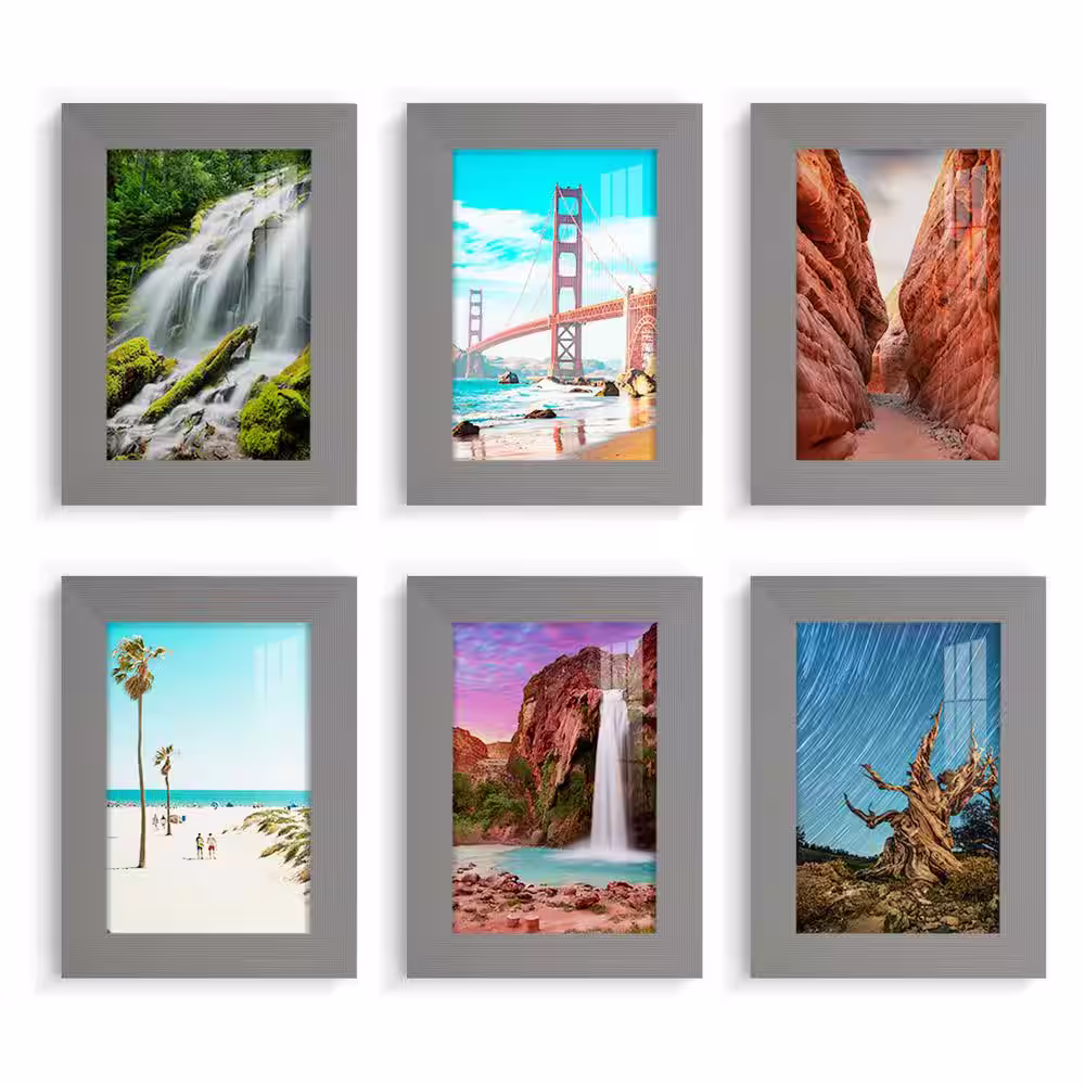 None Textured 5 in. x 7 in. Gray Picture Frame (Set of 6)