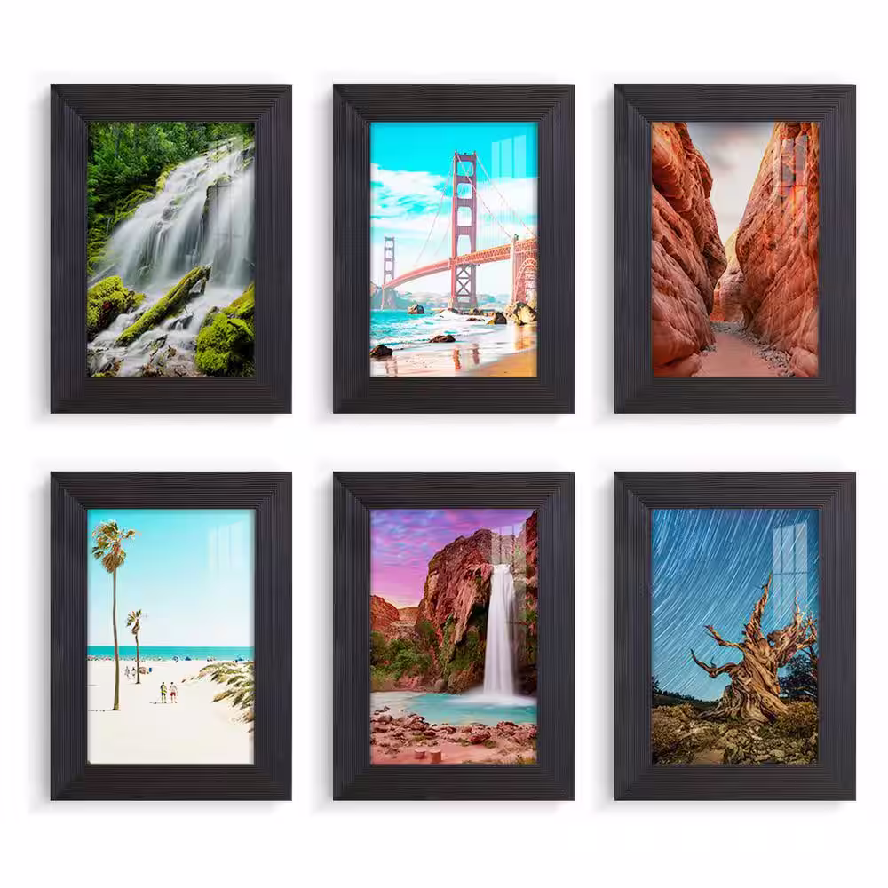 None Textured 5 in. x 7 in. Black Picture Frame (Set of 6)