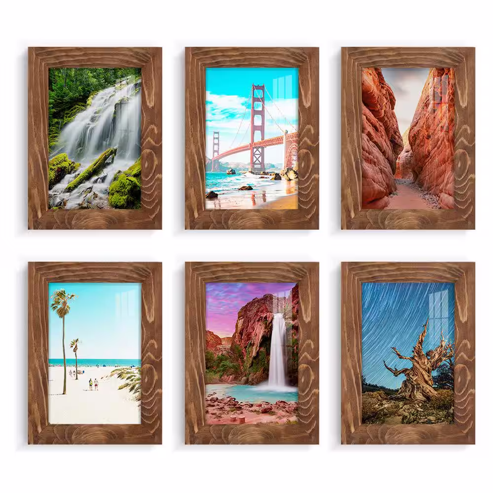 None Woodgrain 5 in. x 7 in. Walnut Picture Frame (Set of 6)