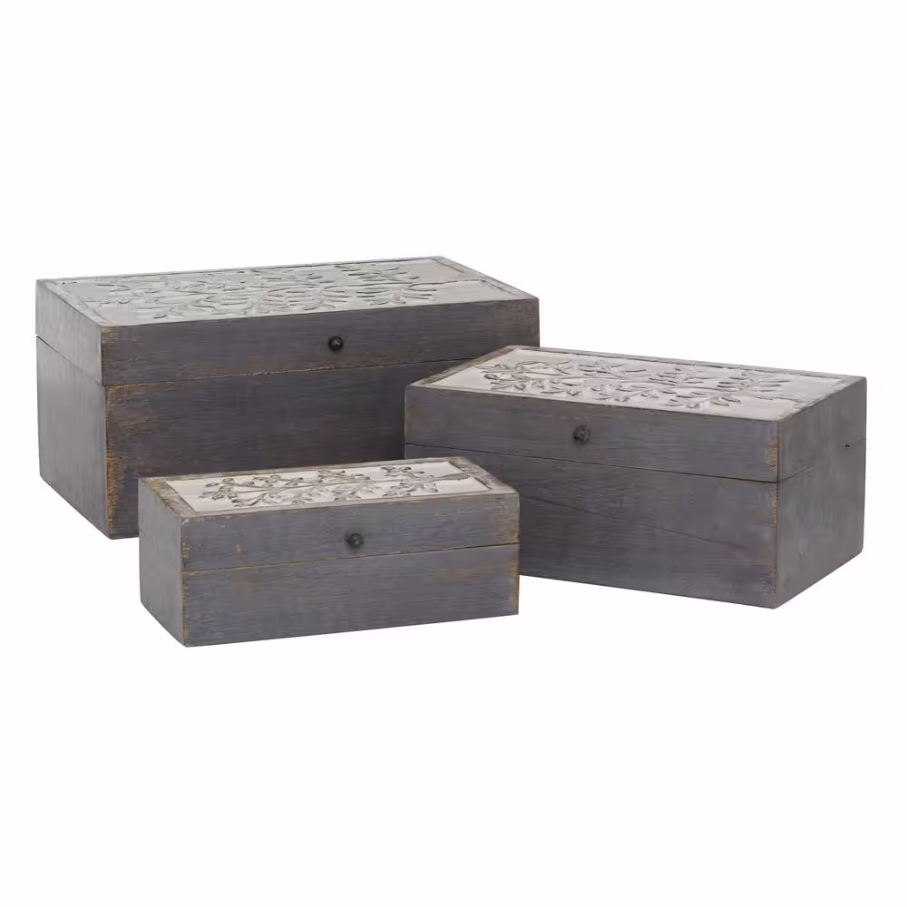 Litton Lane Rectangle Wood Floral Box with Hinged Lid (Set of 3)