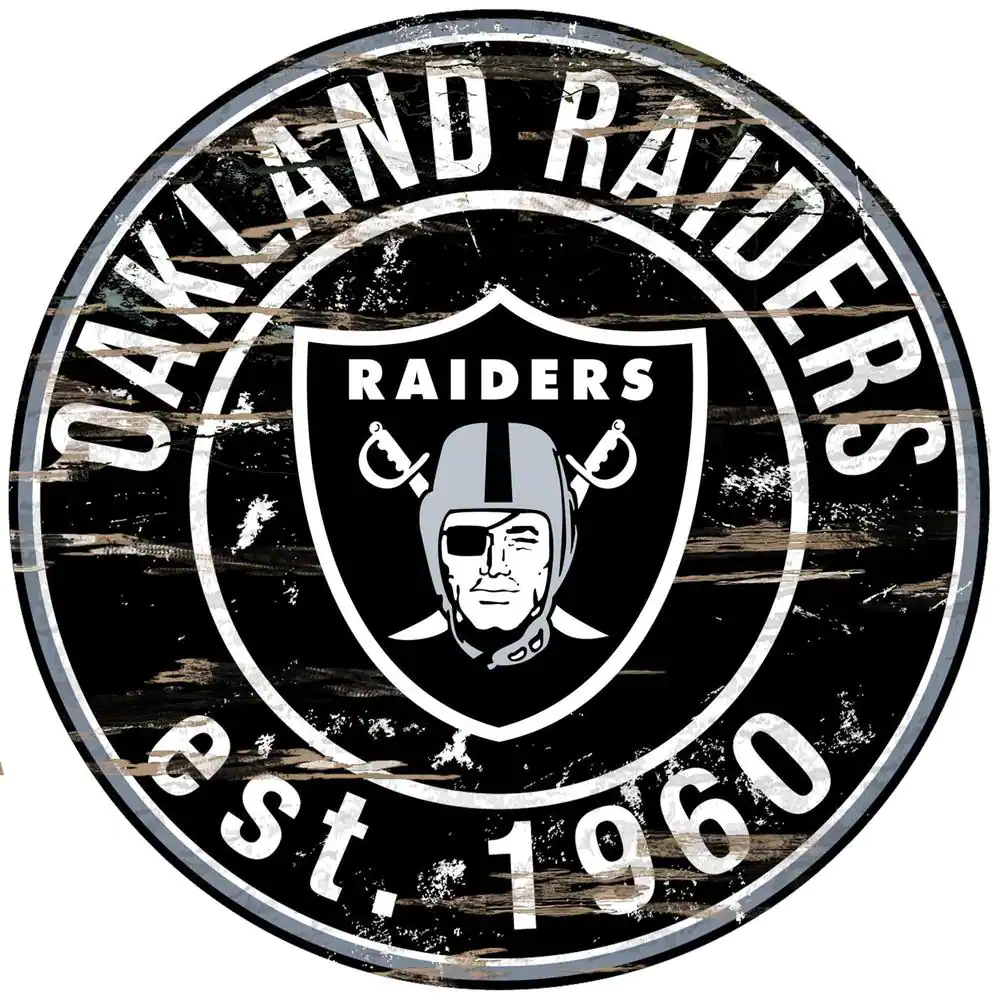 Adventure Furniture 24" NFL Oakland Raiders Round Distressed Sign