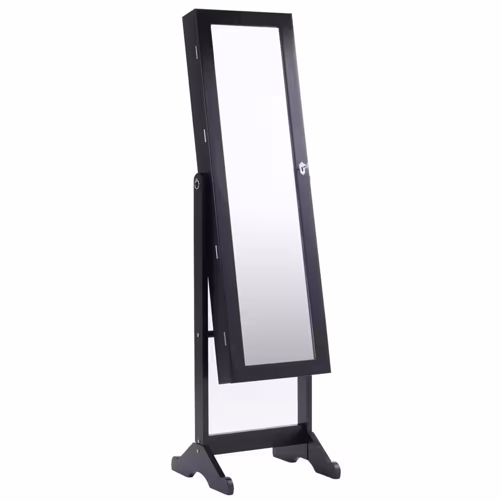 HONEY JOY Black Armoire Mirrored Jewelry Cabinet Dressing Storage Box Jewelry Organizer w/Drawers