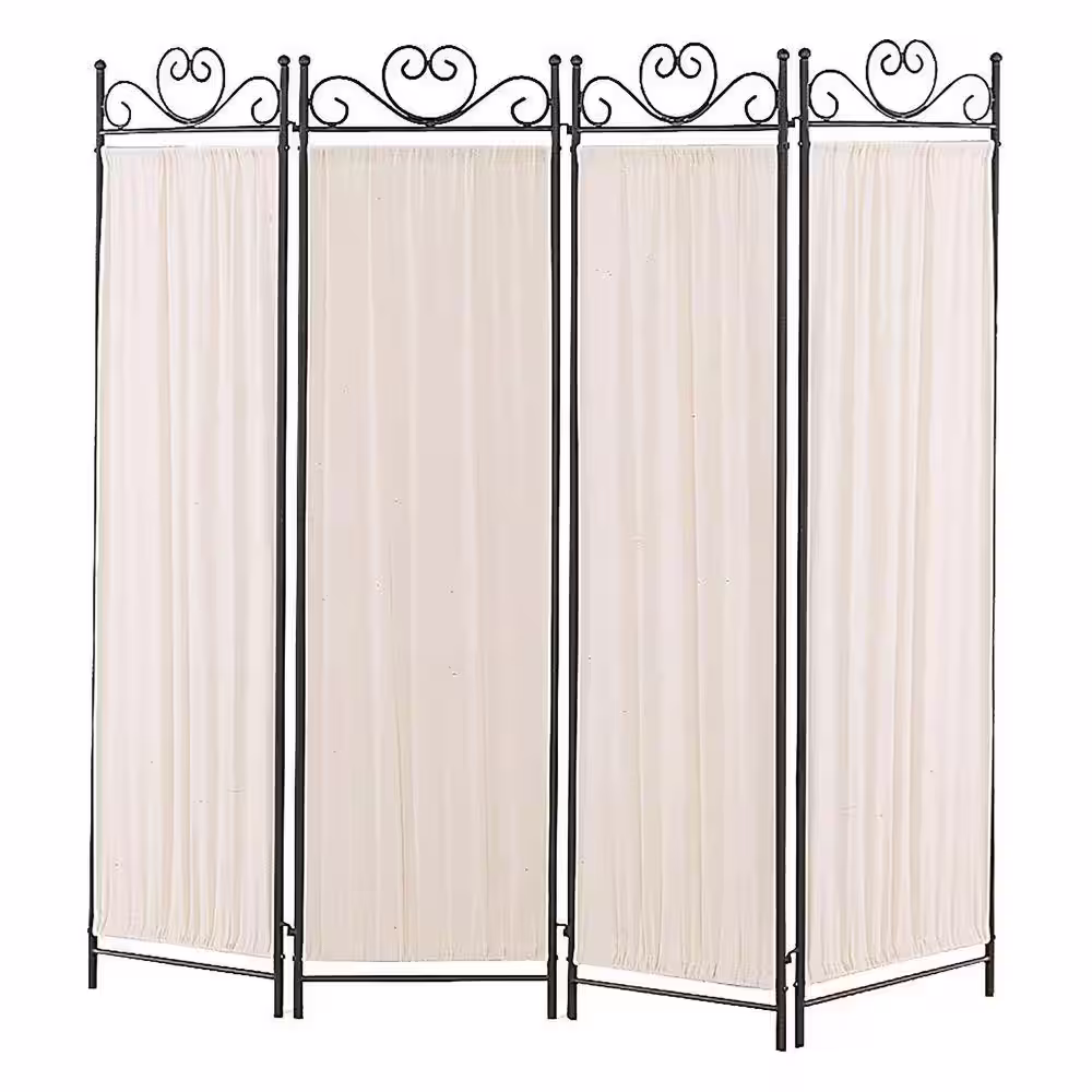 Benjara 5.8 ft. Black 4-Panel Folding Screen Room Divider with Metal Frame and Gathered Fabric Panels