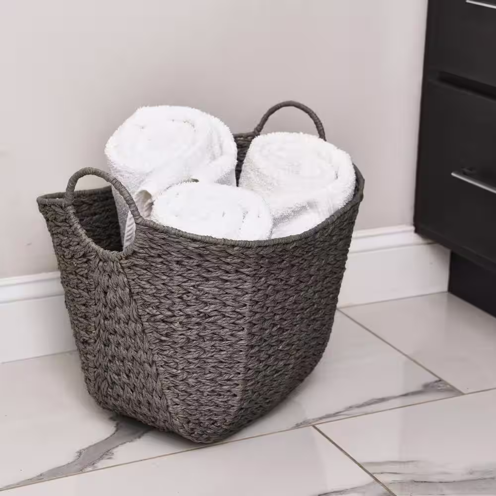 HOUSEHOLD ESSENTIALS Tall Scoop Basket in Gray Paper Rope