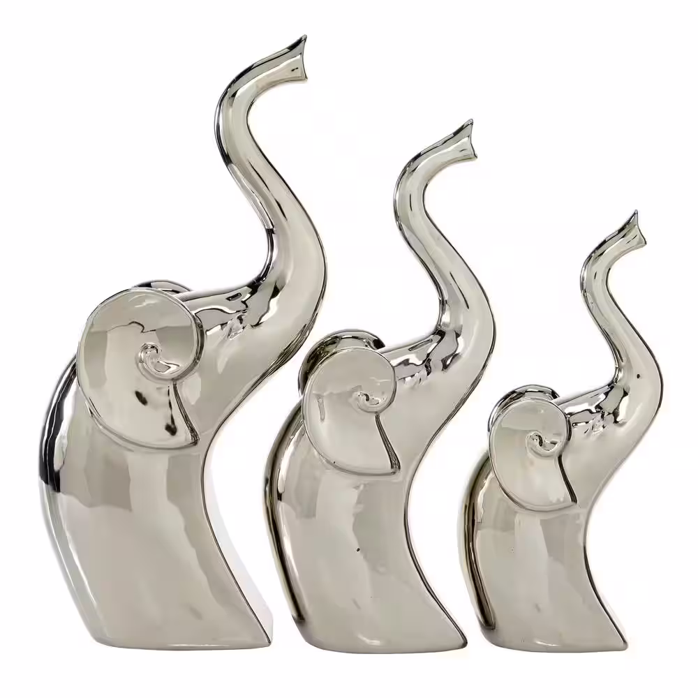 Novogratz Silver Porcelain Elephant Sculpture (Set of 3)