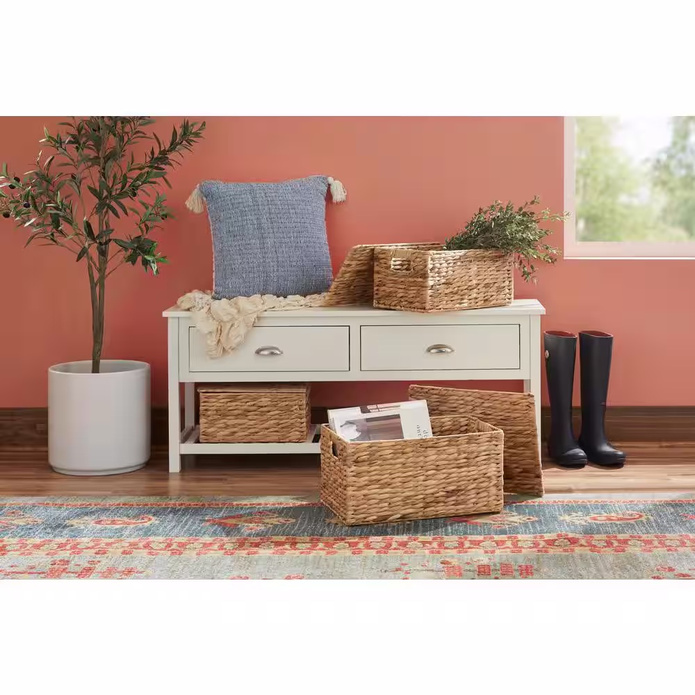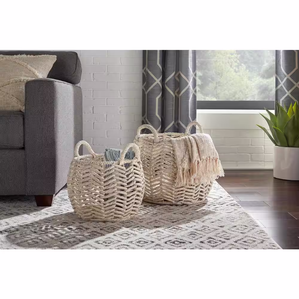 StyleWell Ivory Round Water Hyacinth Decorative Basket with Handles (Set of 2)