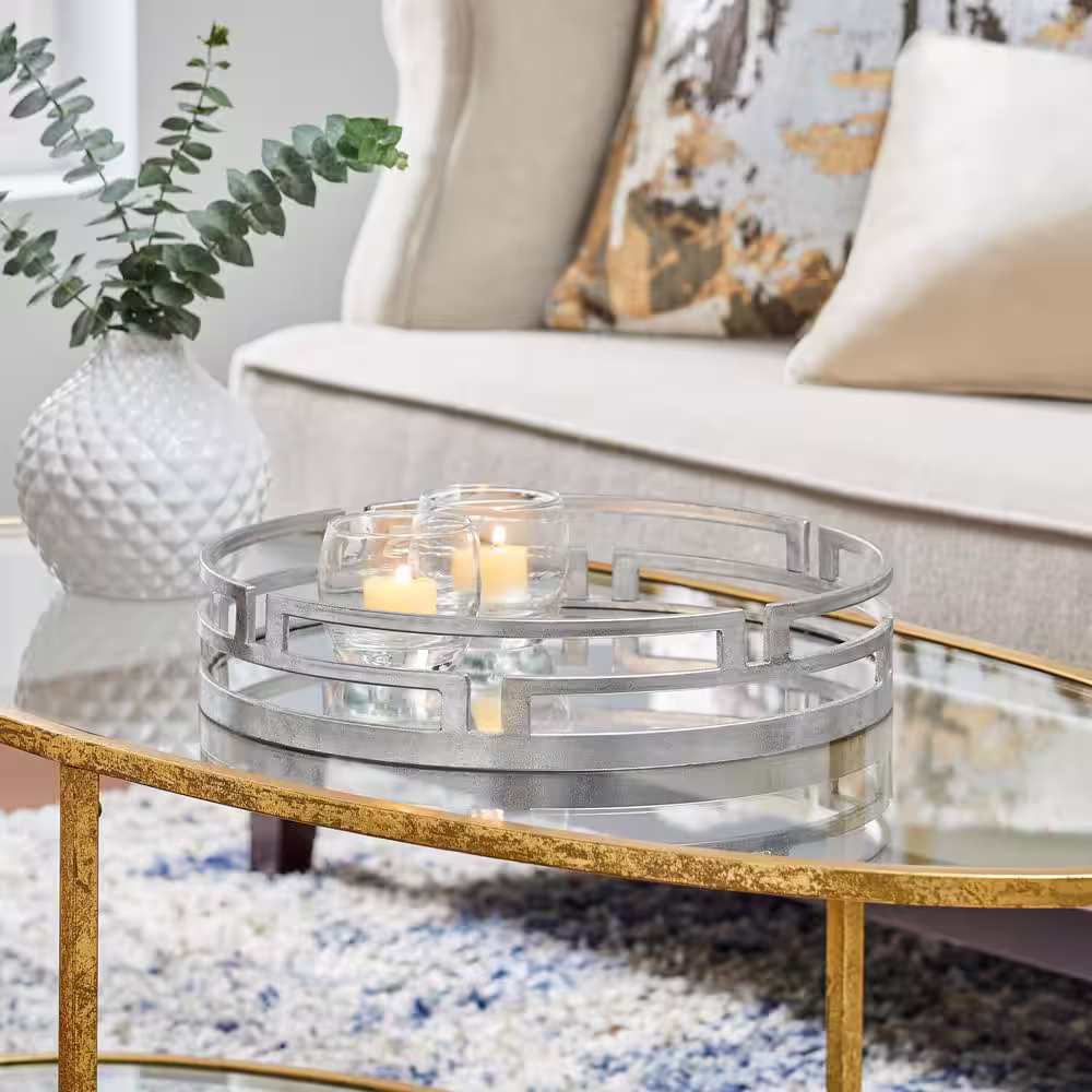 Home Decorators Collection Modern Round Silver Geometric Mirrored Tray (15" Diameter)