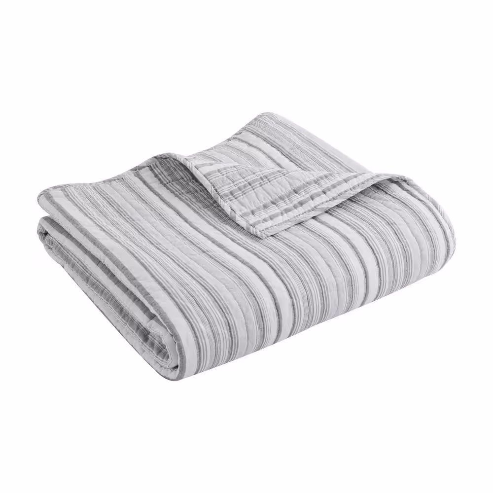 None Bondi Stripe Grey Quilted Cotton Throw Blanket