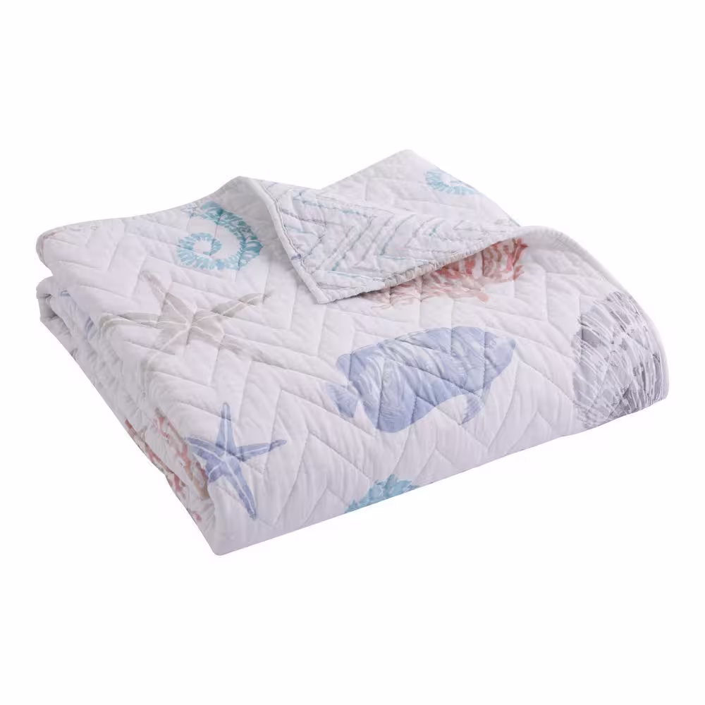 None Blue Sea Multi-color Coastal/Chevron Quilted Cotton Throw Blanket