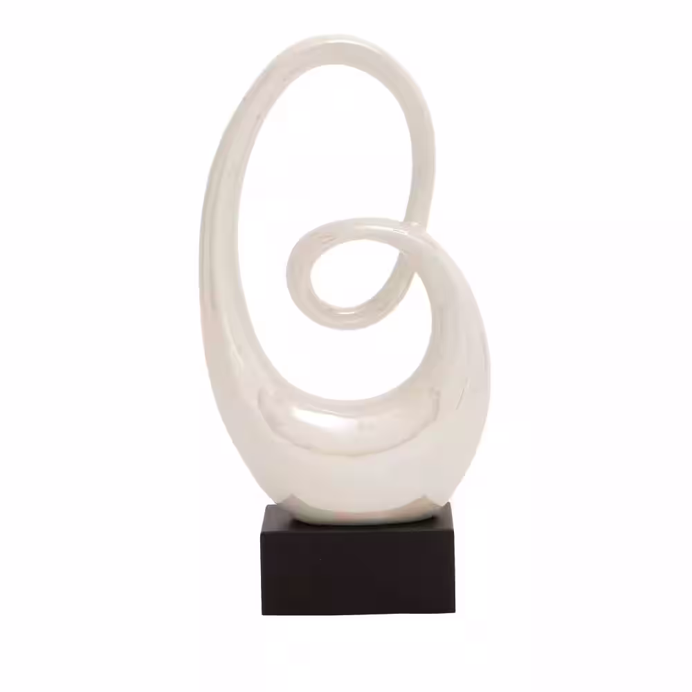 Litton Lane White Ceramic Swirl Abstract Sculpture with Black Base