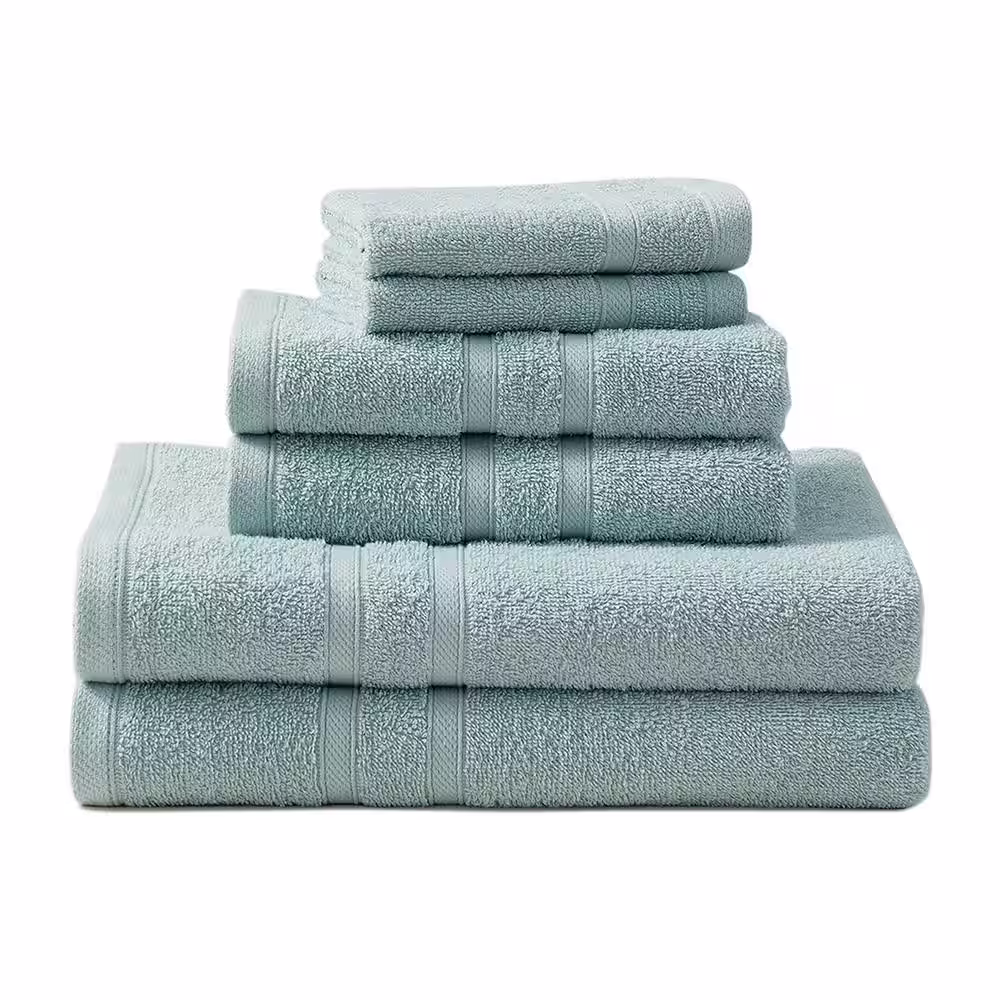 Clorox Bleach Friendly 100% Cotton Quick Dry 2-Bath, 2-Hand, 2-Washcloth 6-Piece Towel Set, Mineral Blue