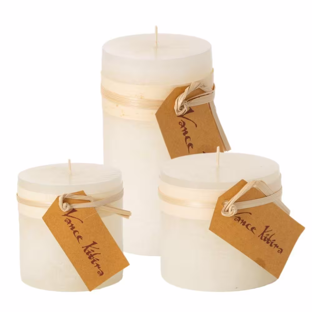 Vance Kitira 6", 4.25" & 3.25"Melon White Timber Pillar Candles - Set of 3