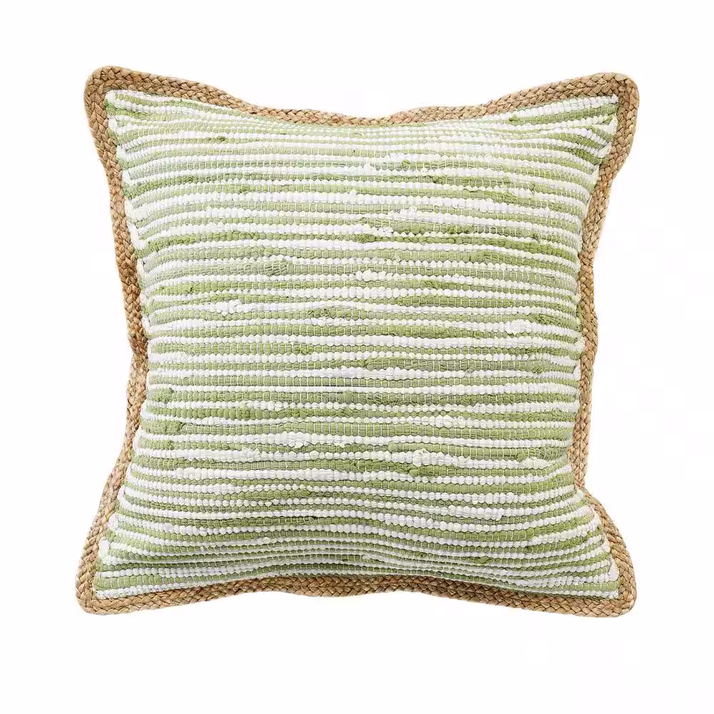LR Home Riley Green/White 20 in. x 20 in. Striped Jute Bordered Polyfill Throw Pillow