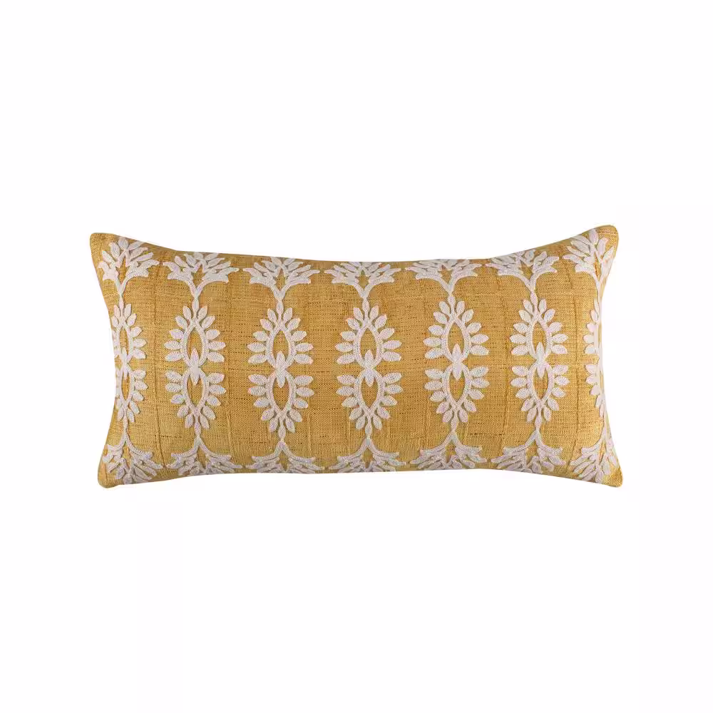 Levtex Home Presidio Yellow Ochre and White Crewel Stitched 12 in. x 24 in. Throw Pillow