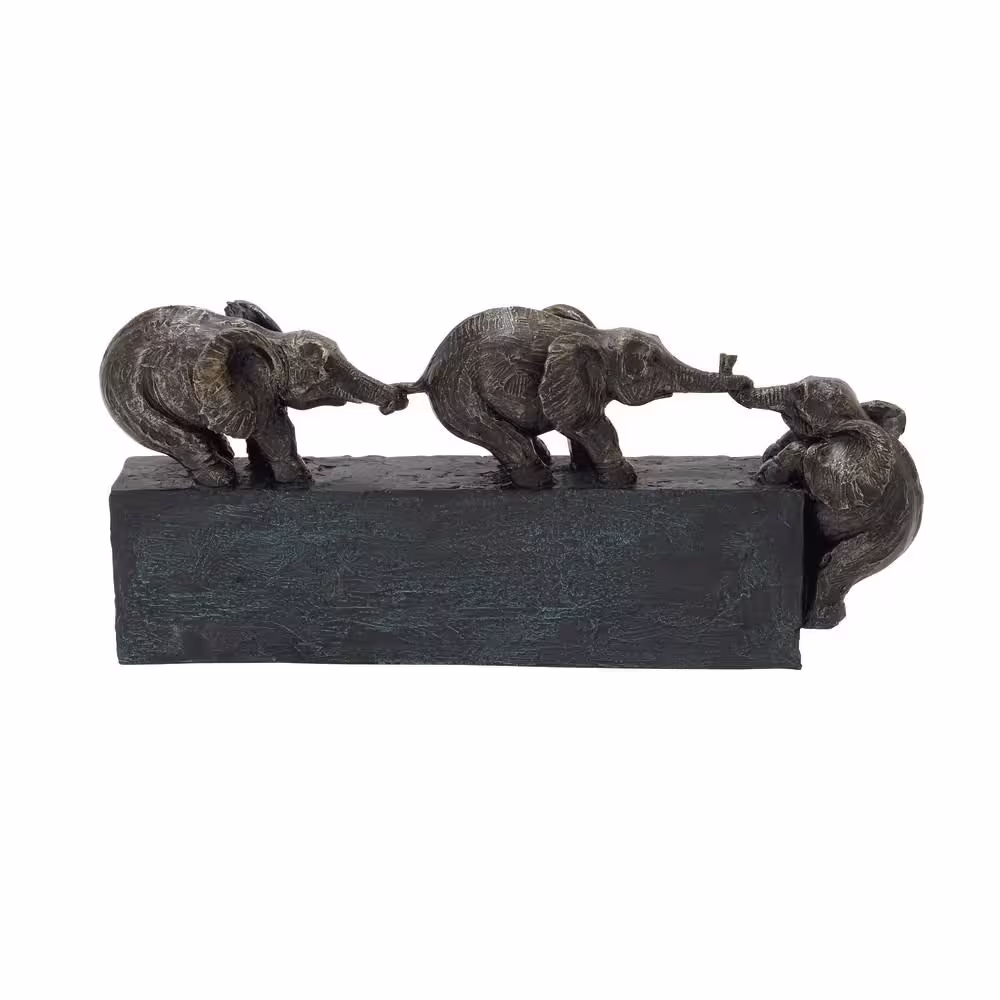 Litton Lane Black Polystone Elephant Sculpture