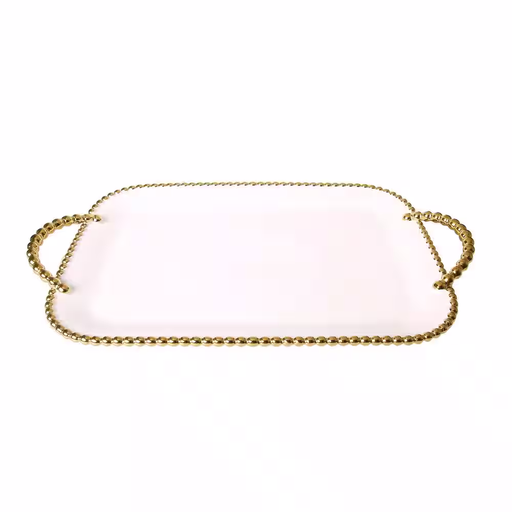 C T Classic Touch Porcelain White Tray with Gold Beaded Borders and Handles