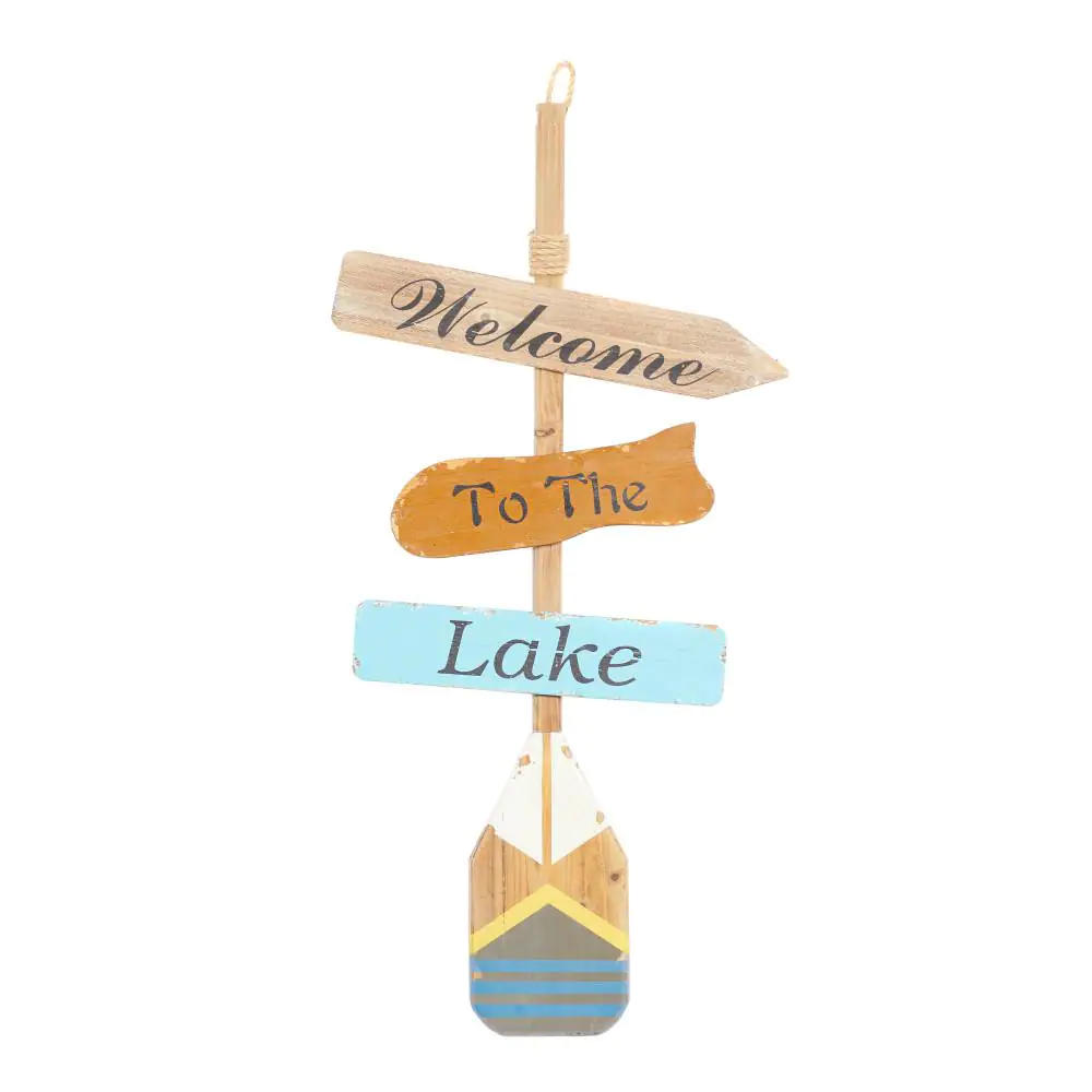 Litton Lane Wood Multi Colored Novelty Canoe Oar Sign Paddle Wall Decor with Arrow and Stripe Patterns