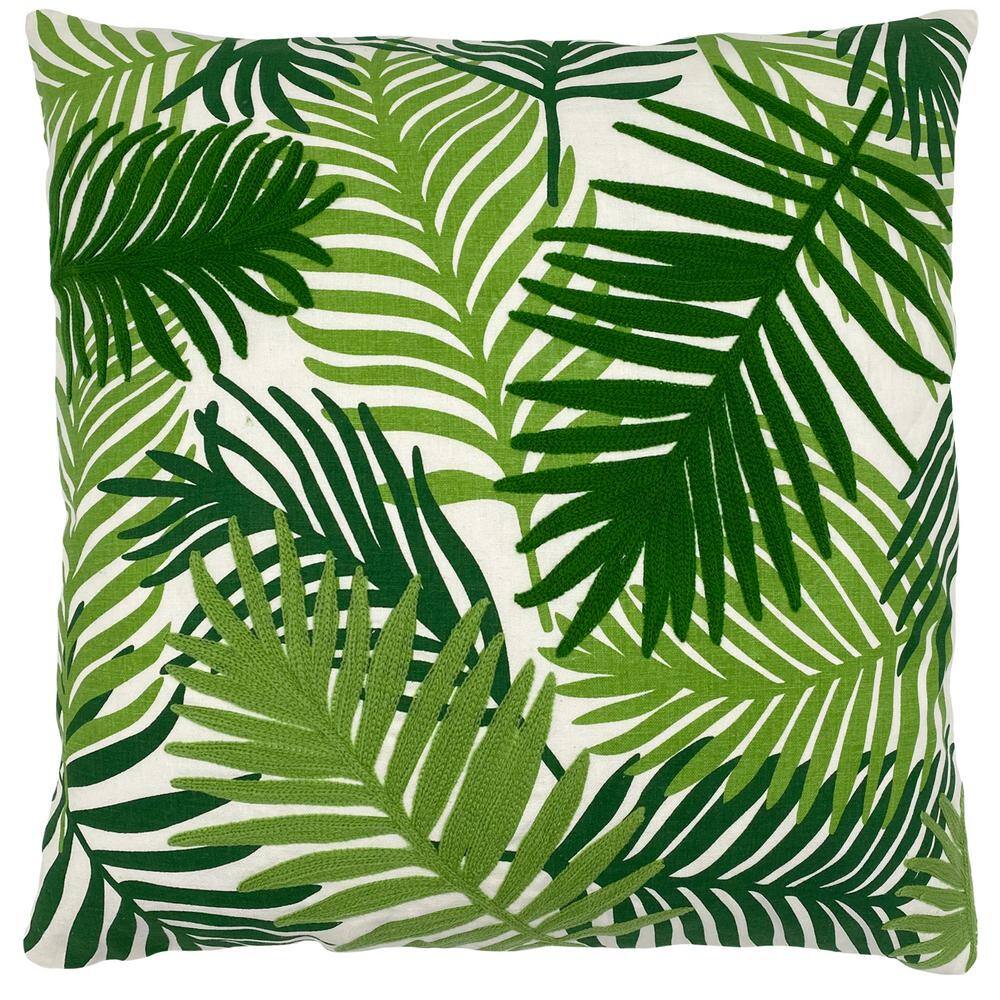 None Green Palm Leaves Embroidery Polyfill 20 in. x 20 in. Square Throw Pillow