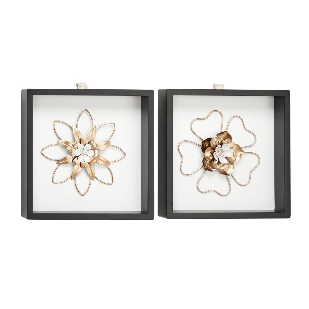 Litton Lane Black Wood Contemporary Floral Wall Decor (Set of 2)