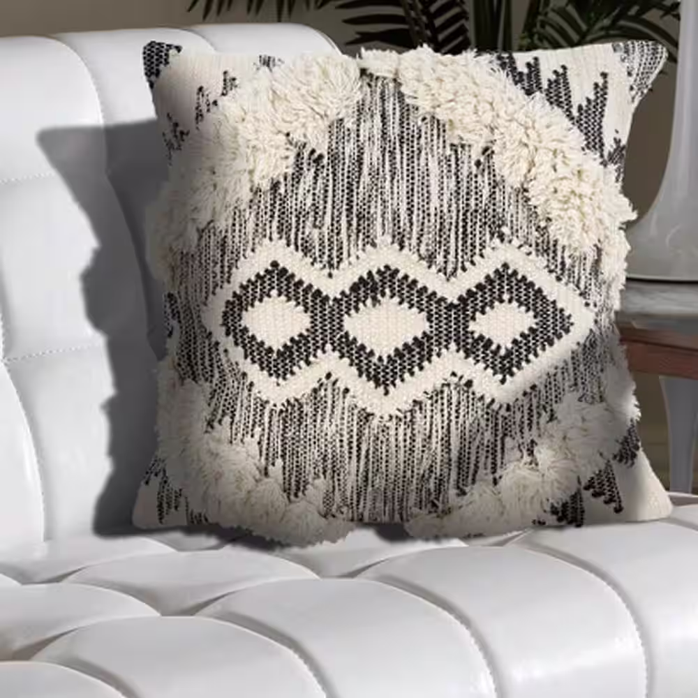 LR Home Ranch Style Ivory and Black Geometric Hypoallergenic Polyester 20 in. x 20 in. Throw Pillow