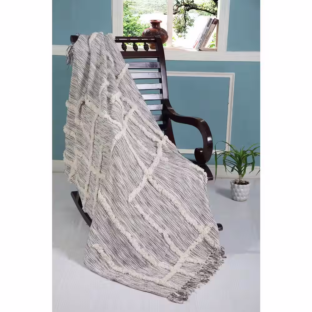 LR Home Linework 50 in. x 60 in. Gray/Natural Decorative Throw Blanket