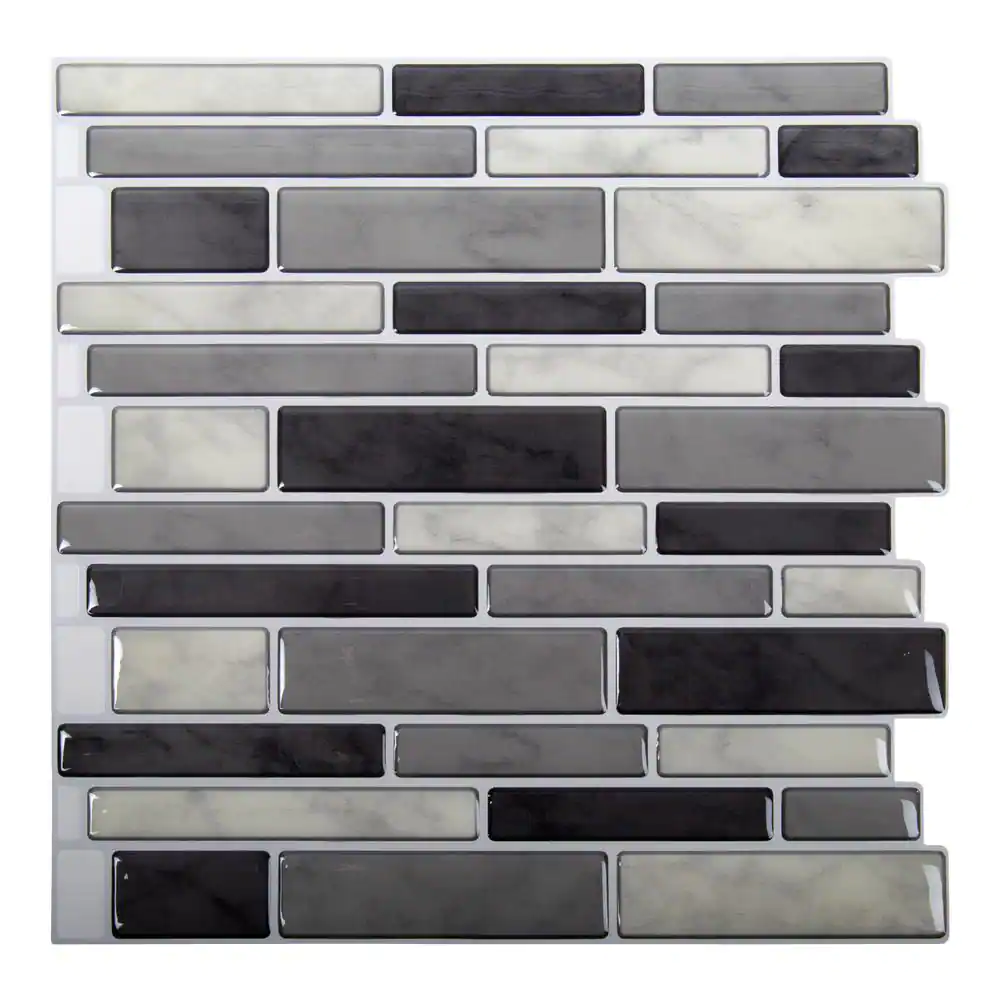 None Self-Adhesive 10 in. x 10 in. Grey 6-Pieces Slim Subway Peel and Stick Backsplash Wall Tiles