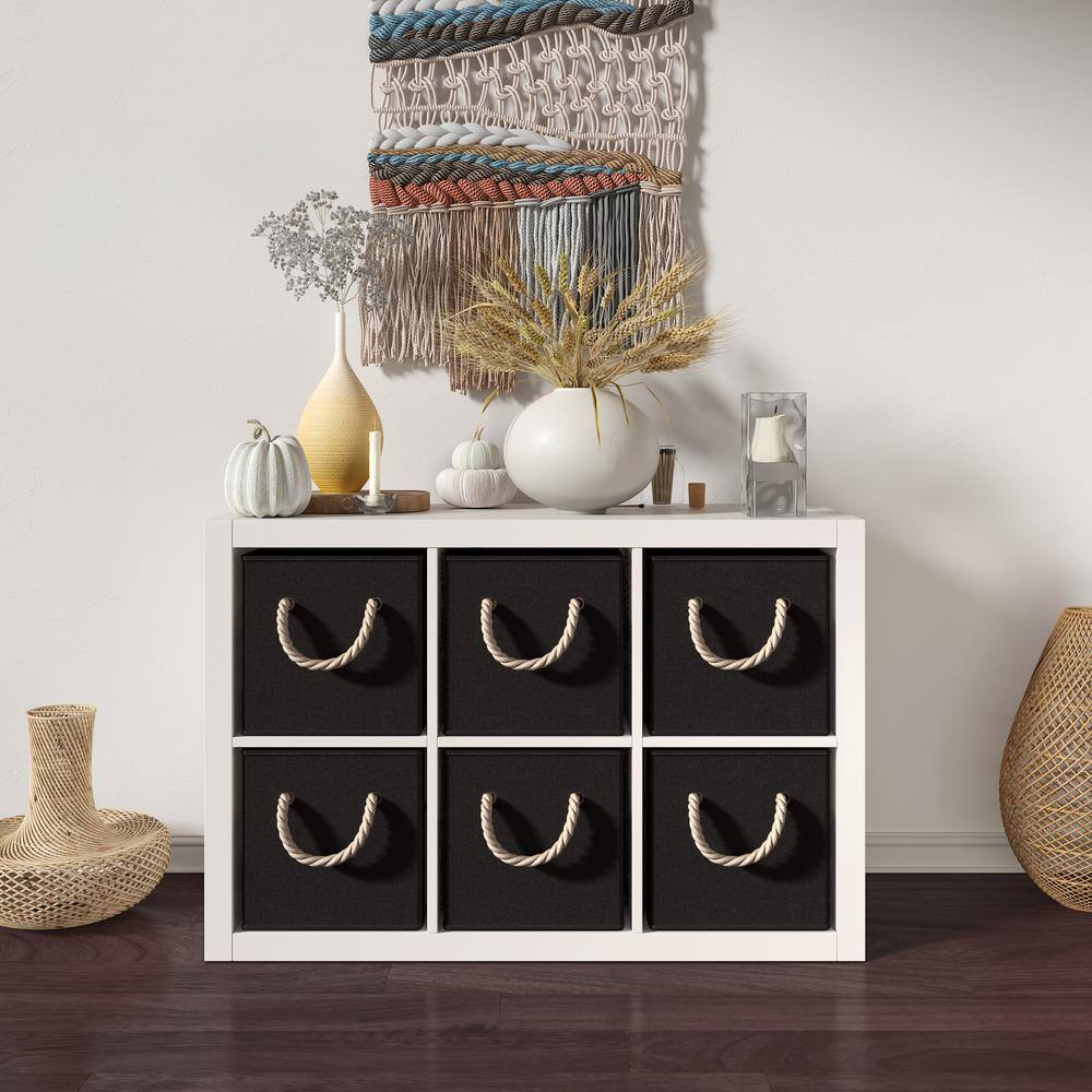 None 6-Pack Foldable Fabric Storage Cube Bins Linen Shelf Basket Cube with Rope Handles