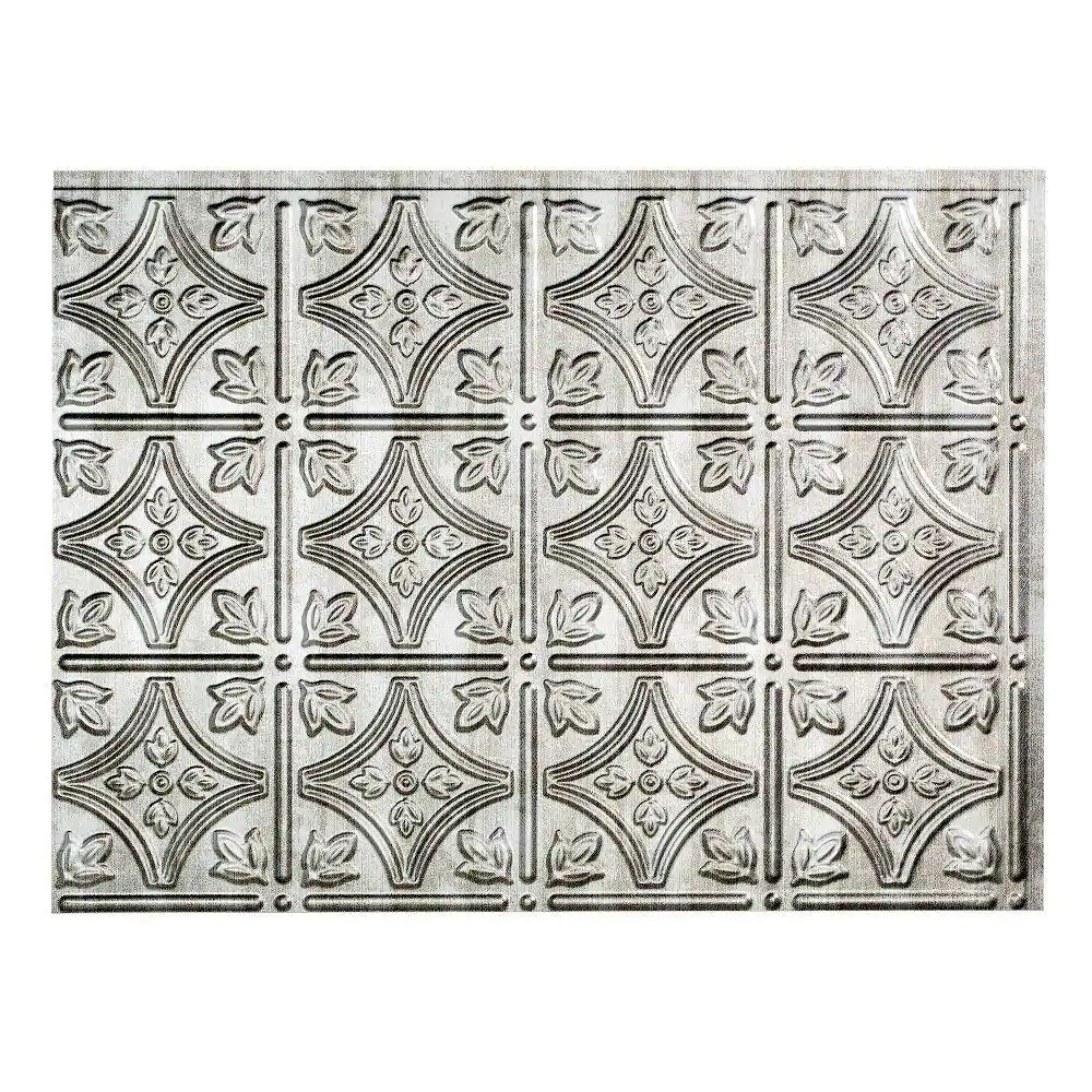 Fasade 18.25 in. x 24.25 in. Crosshatch Silver Traditional Style # 1 PVC Decorative Backsplash Panel