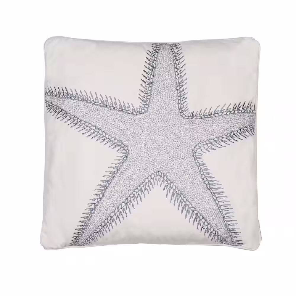 None St Bart Blue, White Embroidered Starfish 20 in. x 20 in. Throw Pillow