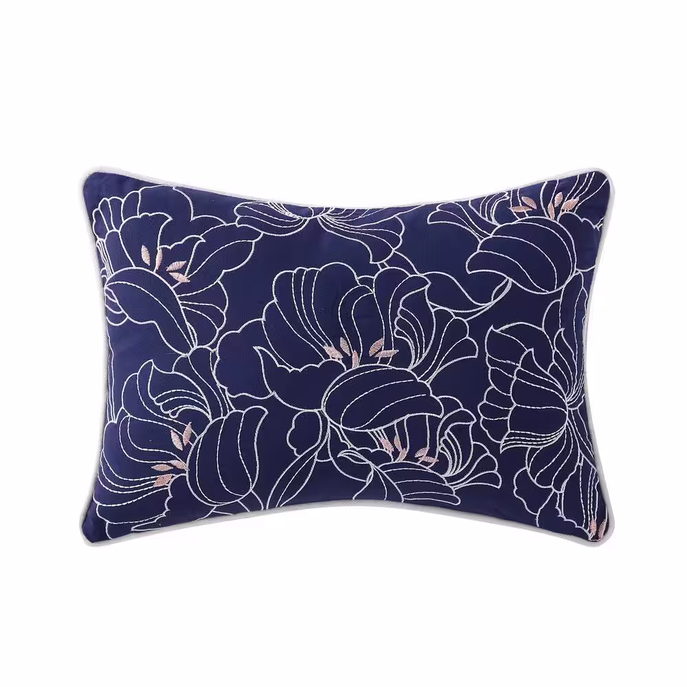 Levtex Home Zuma Beach Blue and White Coral Embroidered 18 in. x 18 in. Throw Pillow