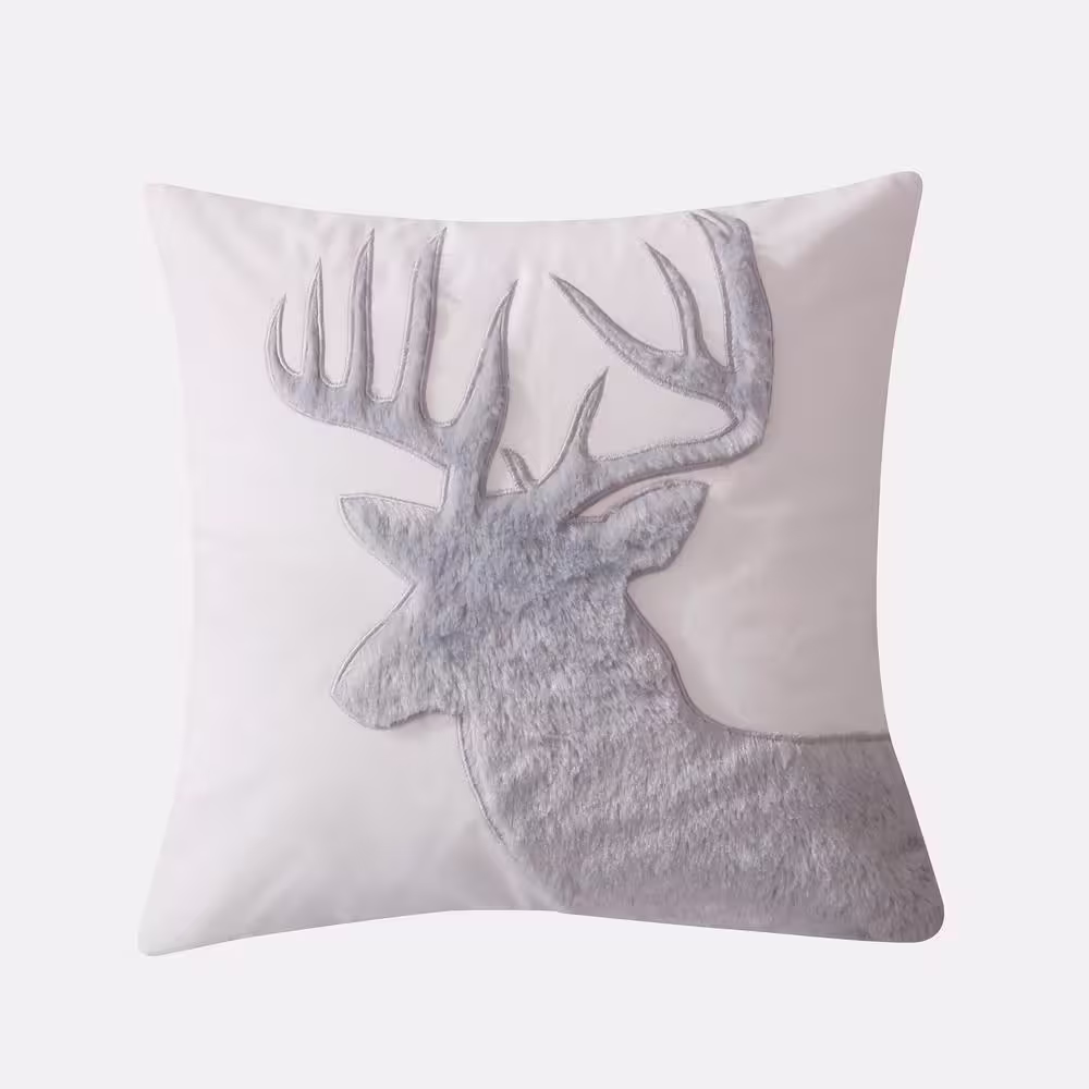 LEVTEX HOME Camden White, Grey Faux Fur Moose Silhouette 18 in. x 18 in. Throw Pillow