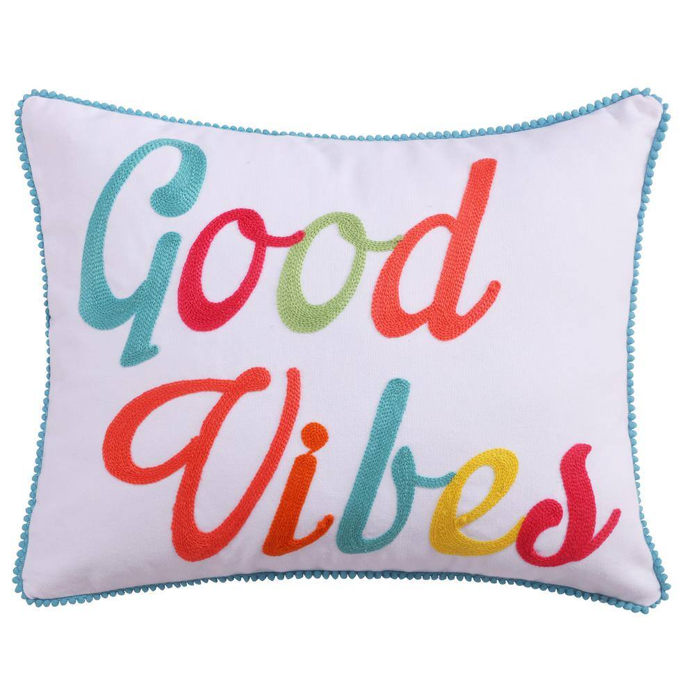 None Majestic Multi-Color "Good Vibes" Embroidered 18 in. x 14 in. Throw Pillow