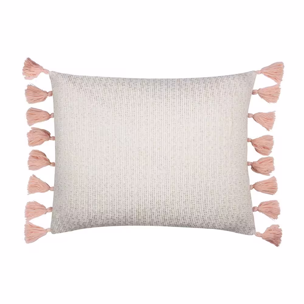 None Fiori Cream, Tan, Coral Pink Texture Slub 16 in. x 20 in. Throw Pillow