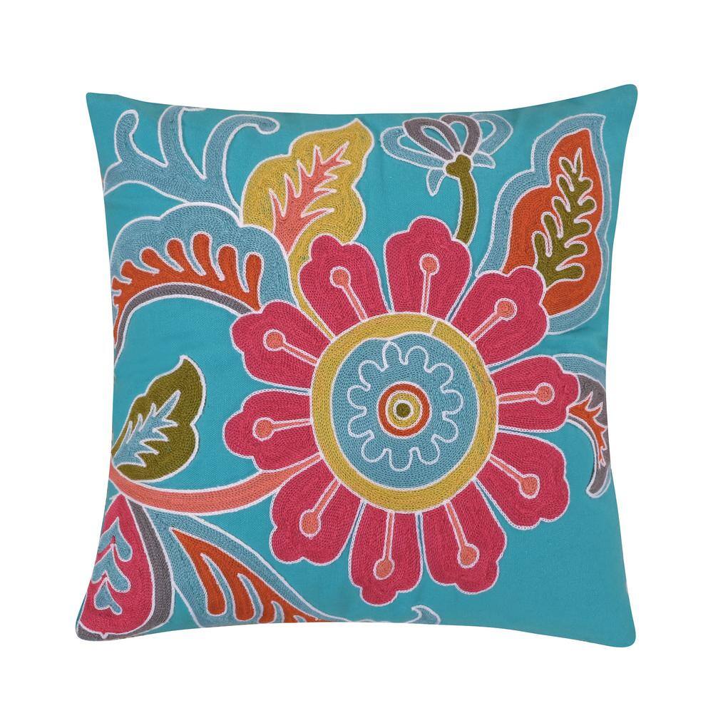 None Palisades Multicolor Floral Embroidered 18 In. x 18 In. Throw Pillow