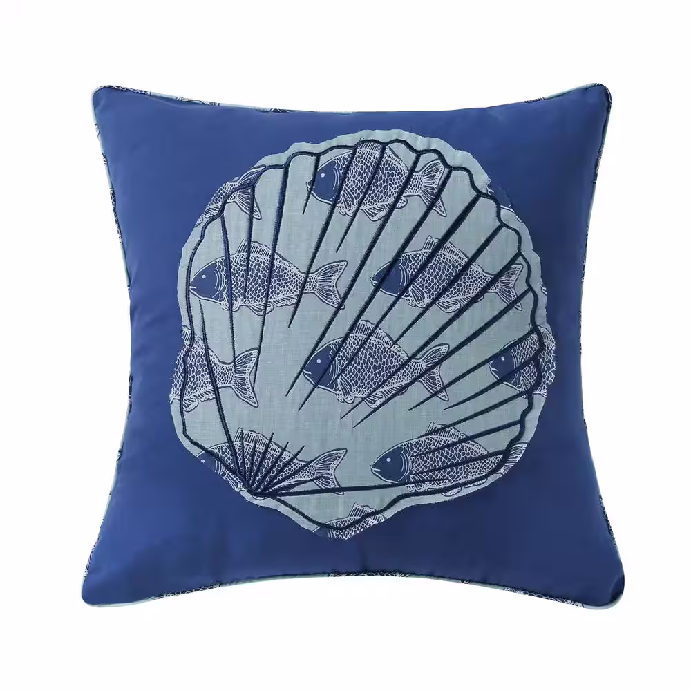 Levtex Home Bayport Blue Shell Appliqued 20 in. x 20 in. Throw Pillow