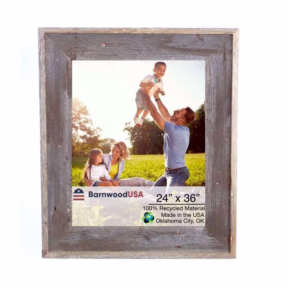 None Rustic Farmhouse Artisan 24 in. x 36 in. Espresso Reclaimed Picture Frame