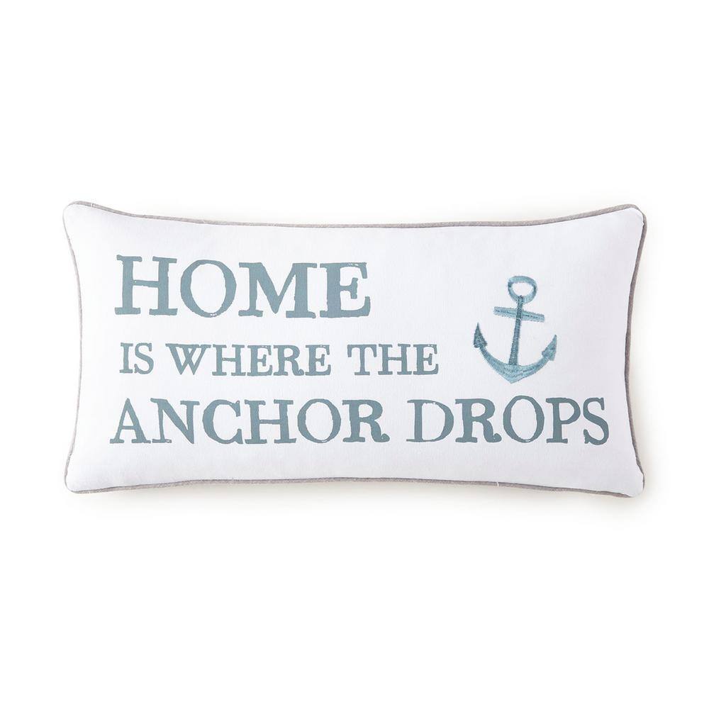 Levtex Home Provincetown White, Grey, and Soft Teal Anchor Embroidered and Trim 12 in. x 24 in. Throw Pillow