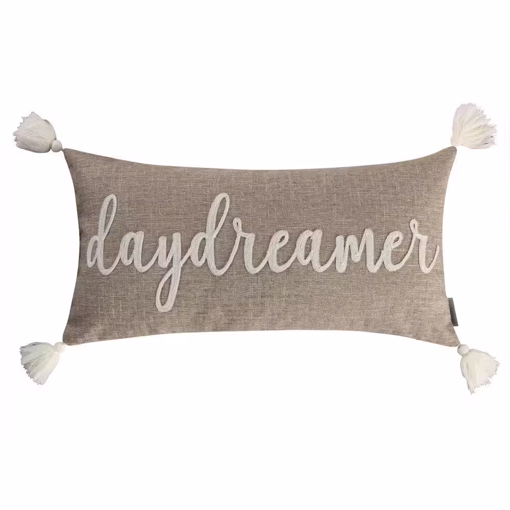 LEVTEX HOME Mills Waffle Cream, Taupe Daydreamer Crewel Stitch 12 in. x 24 in. Throw Pillow