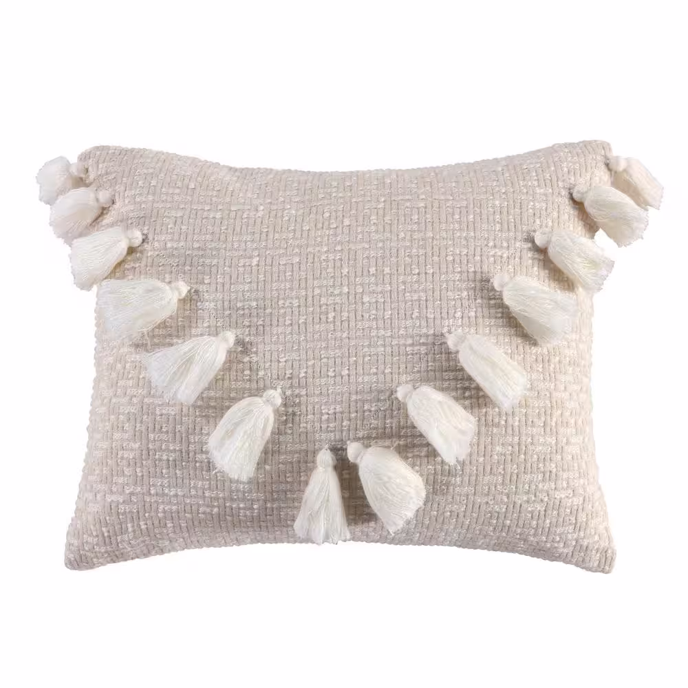 LEVTEX HOME Mills Waffle Cream Tone Textured Tassel 14 in. x 18 in. Pillow