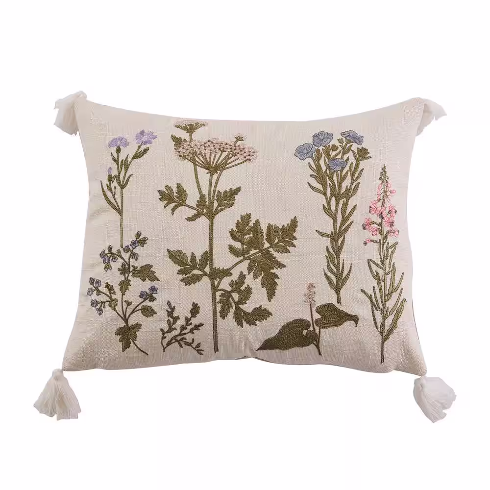 None Apolonia Cream Floral Embroidered 18 in. x 14 in. Throw Pillow
