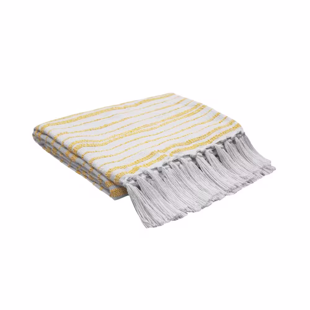 None Hampton Stripe Gold and Cream 50 in. x 60 in. Cotton Throw Blanket