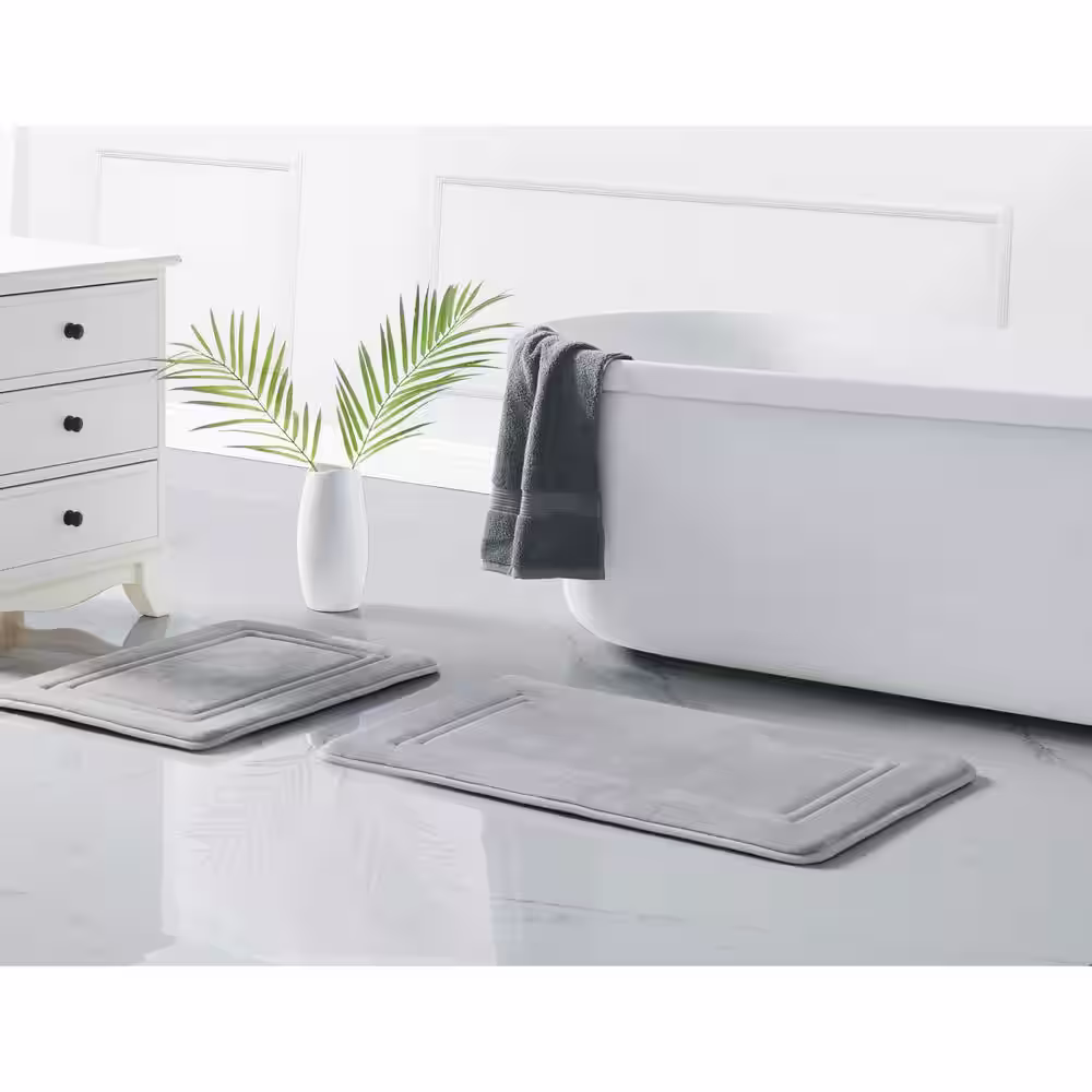 TRULY CALM HeiQ Light Grey 20 in. x 32 in. Antimicrobial Memory Foam Bath Rug