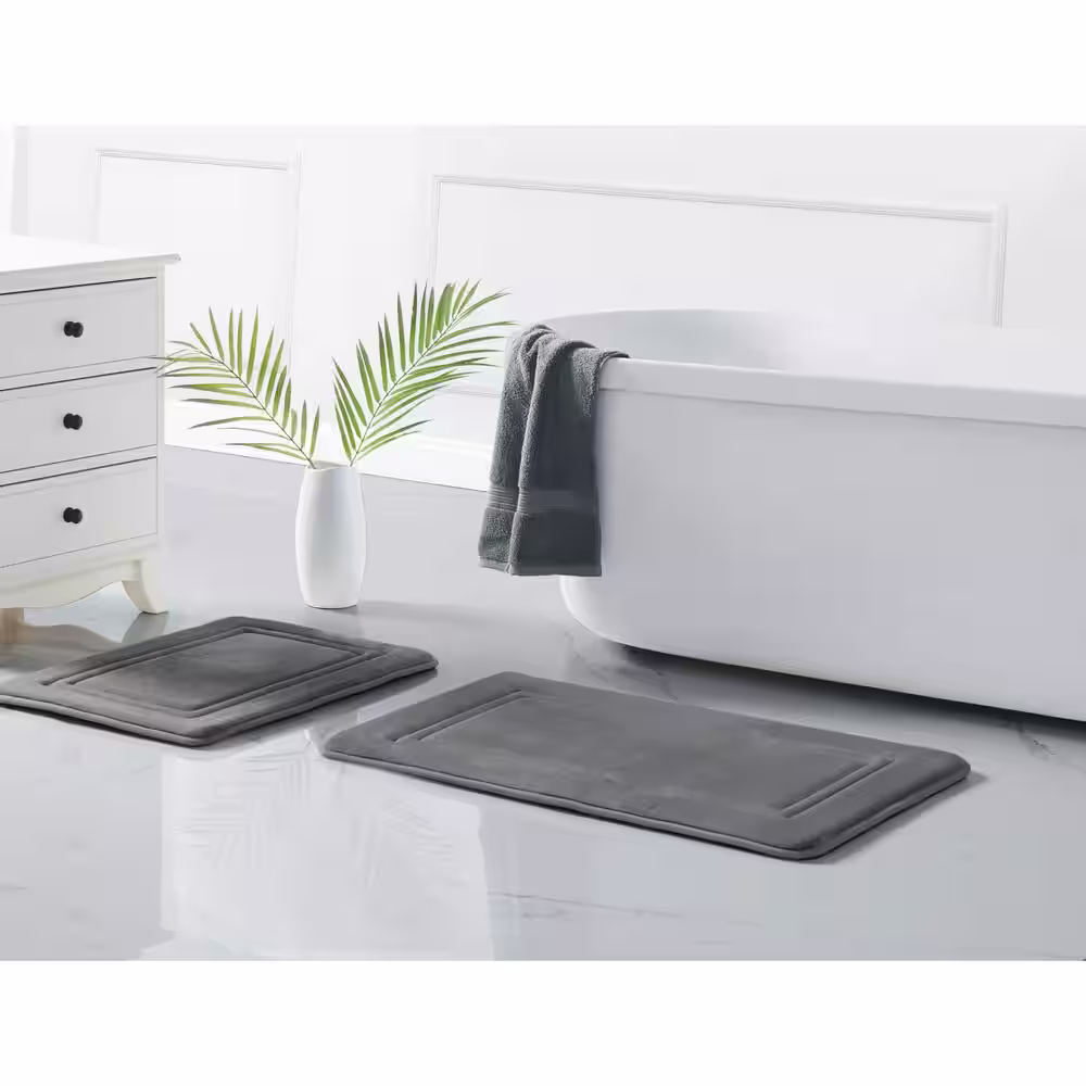 TRULY CALM HeiQ Grey 20 in. x 32 in. Antimicrobial Memory Foam Bath Rug