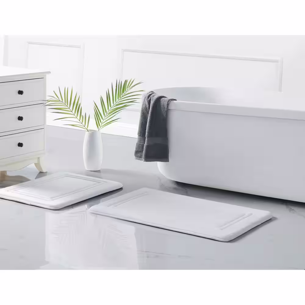 TRULY CALM HeiQ Antimicrobial Memory Foam (20x32) Bath Rug in White