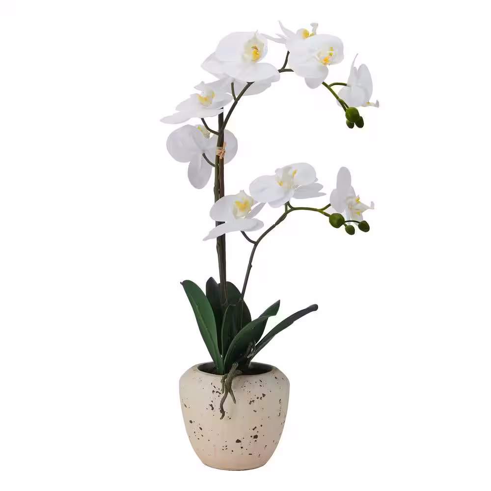 Mikasa Real Touch 22- Inch White/Yellow Artificial Phalaenopsis Orchid, Faux Aged Cement Pot, Double Branch
