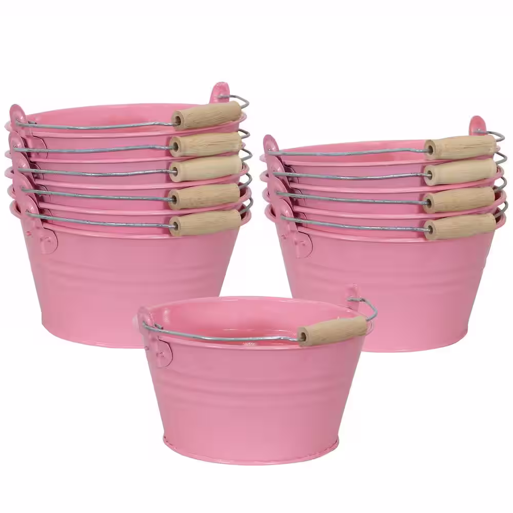 Sunnydaze Decor Galvanized Steel Bucket Planter with Handle - Pink - Set of 10