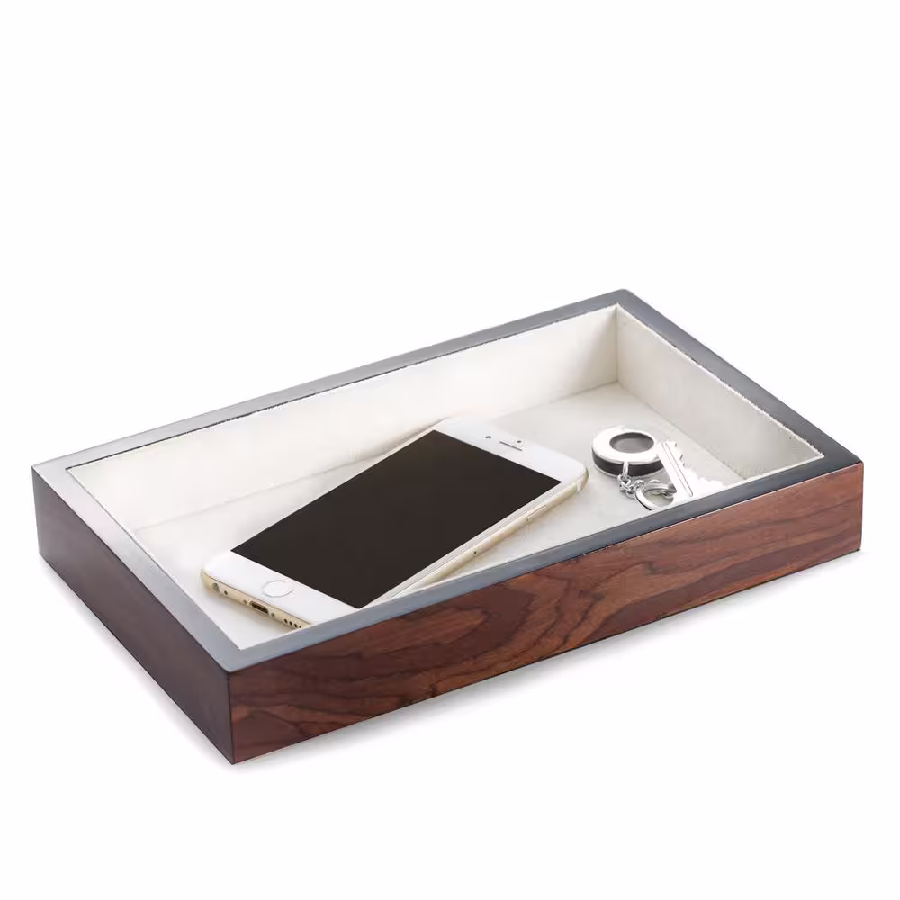 BEY-BERK Lacquered Brown Burl Wood Open Face Valet Tray